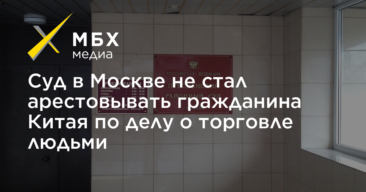 Суд в Москве не стал арестовывать гражданина Китая по делу о торговле людьми