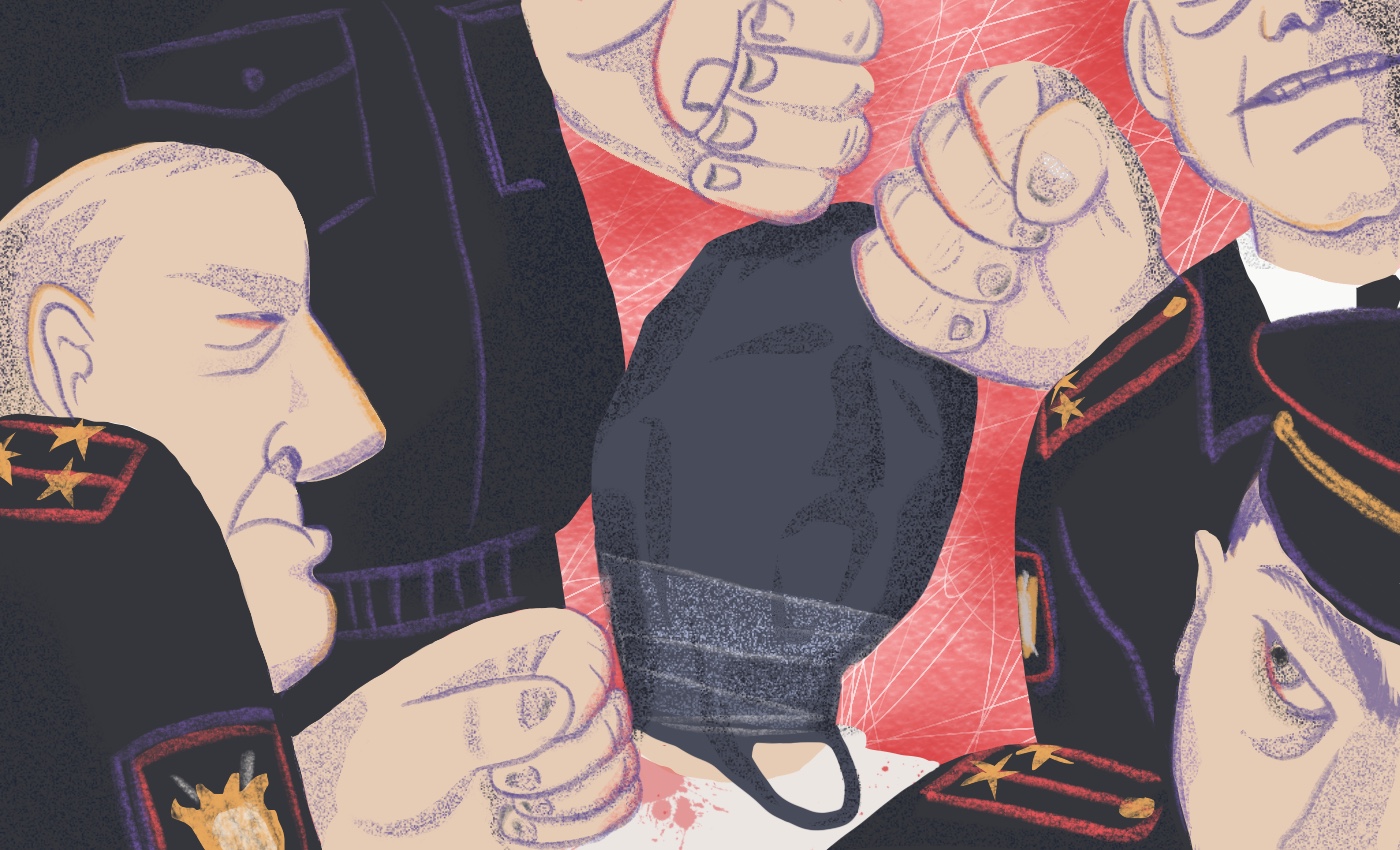 Это длилось около четырех часов, потом оперативник Майсурадзе продолжил пытки в одиночестве: он уложил задержанного на пол и несколько раз ударил ногой по голове.