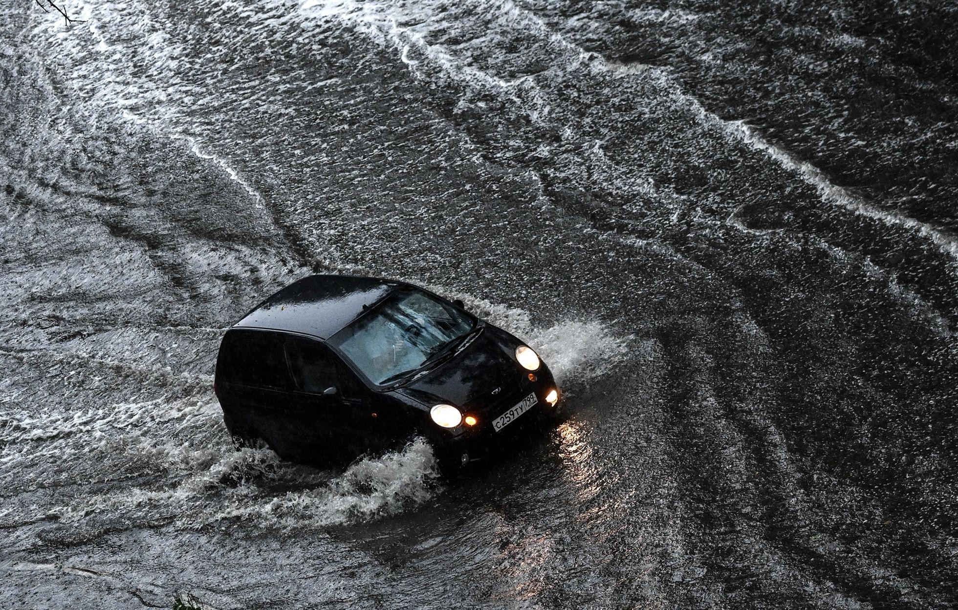 «Суперливень» в Москве. Затоплены улицы и станция метро. В Раменском из-за ветра рухнул строительный кран. Фото и видео