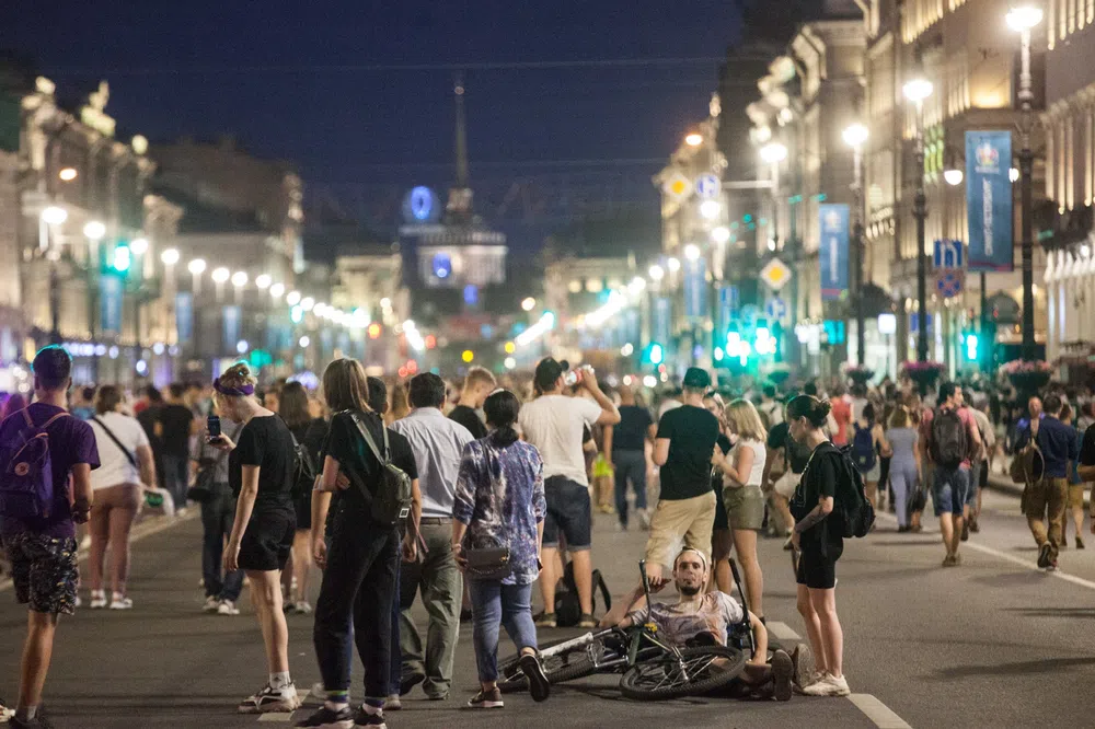К концу концерта, не дожидаясь финальных песен хедлайнера — Лободы, — зрители потянулись в сторону набережных, чтобы успеть найти место, откуда будет видна самая красочная часть праздника — водно-пиротехническое шоу. Но попавшие на берега Невы увидели лишь проход брига под парусами и фейерверк. Картинка в телевизоре была значительно богаче.