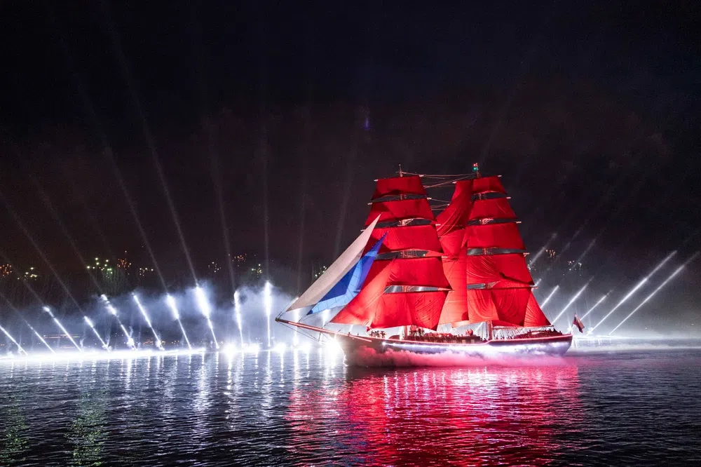 Главную роль праздника — корабля под алыми парусами — с 2019 года исполняет бриг «Россия». Это бывший голландский парусник Mercedes, перестроенный из рыболовецкого сейнера ORA ET LABORA («Молись и работай») 1958 года рождения. Тезкой банка Юрия Ковальчука корабль стал после того, как был приобретен Петербургом при финансовой поддержке банка. Соотношение вложений в эту покупку и кто теперь его владелец, не раскрывалось. Банк «Россия» выступал заказчиком модернизации брига, проведенной год назад на Средне-Невском судостроительном заводе.