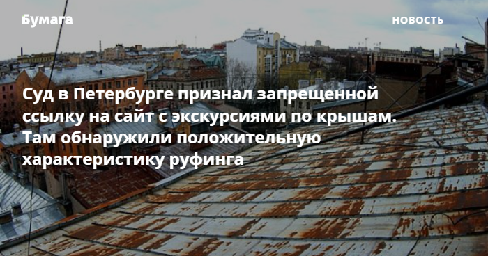 Суд в Петербурге признал запрещенной ссылку на сайт с экскурсиями по крышам. Там обнаружили положительную характеристику руфинга