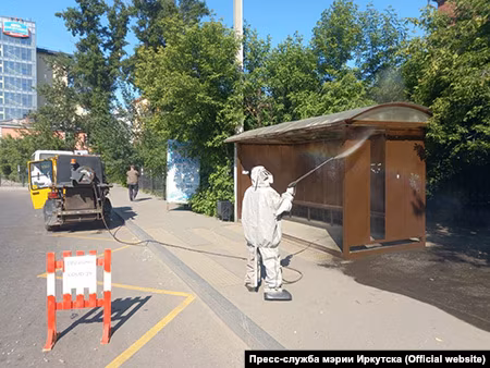 Иркутск: в городе снова дезинфицируют остановки и скверы