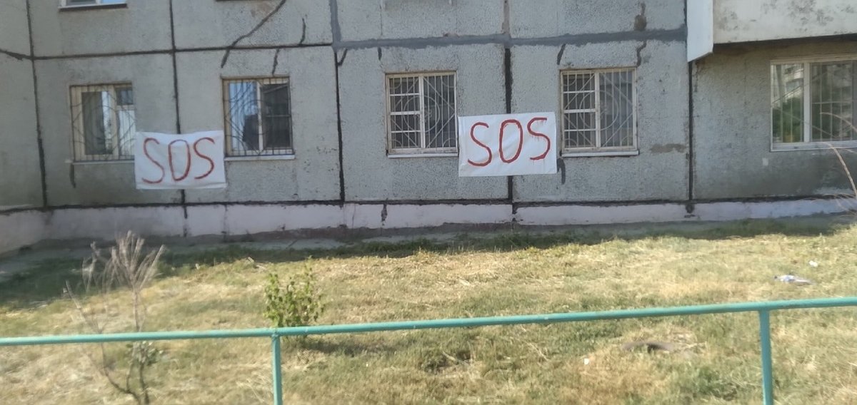 Жильцы "падающего" дома в микрорайоне Северный в Чите развесили в окнах и на балконах плакаты с просьбой о помощи "SOS". Об этом редакции сообщили сами жильцы.