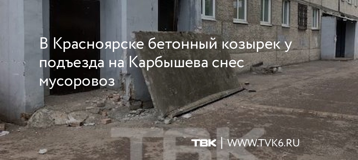 В Красноярске бетонный козырек у подъезда на Карбышева снес мусоровоз