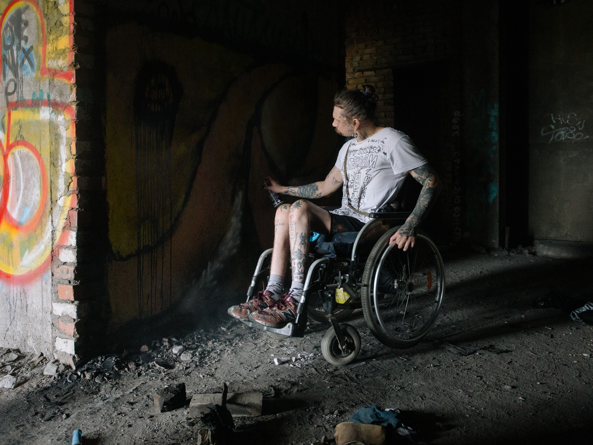 Десять лет назад я трезвый оступился на заброшке, упал и сломал позвоночник. Просто я невнимательный человек. Возможно, у меня были бы какие-то шансы на восстановление, если бы я попал на нормальную реабилитацию, но медики сказали, что надо долго ждать, пока дойдет очередь, или заплатить сумму, которая была для меня абсолютно неподъемной.