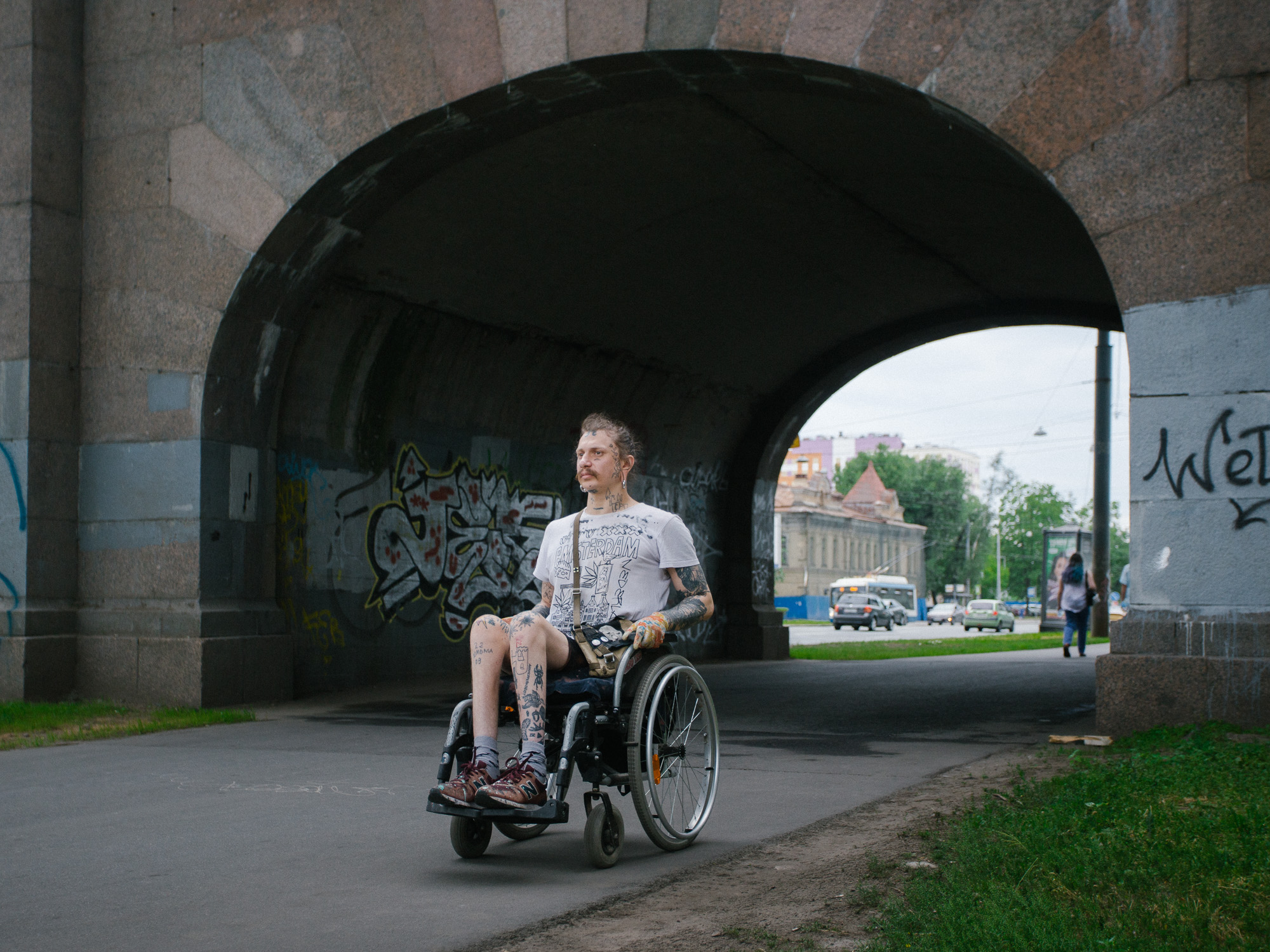 «Бумага» поговорила с Виталием о том, как он заканчивает школу в 32 года, почему любит слово «лох» в стрит-арте, с какими стереотипами сталкивается из-за коляски и как добивается государственной помощи.
