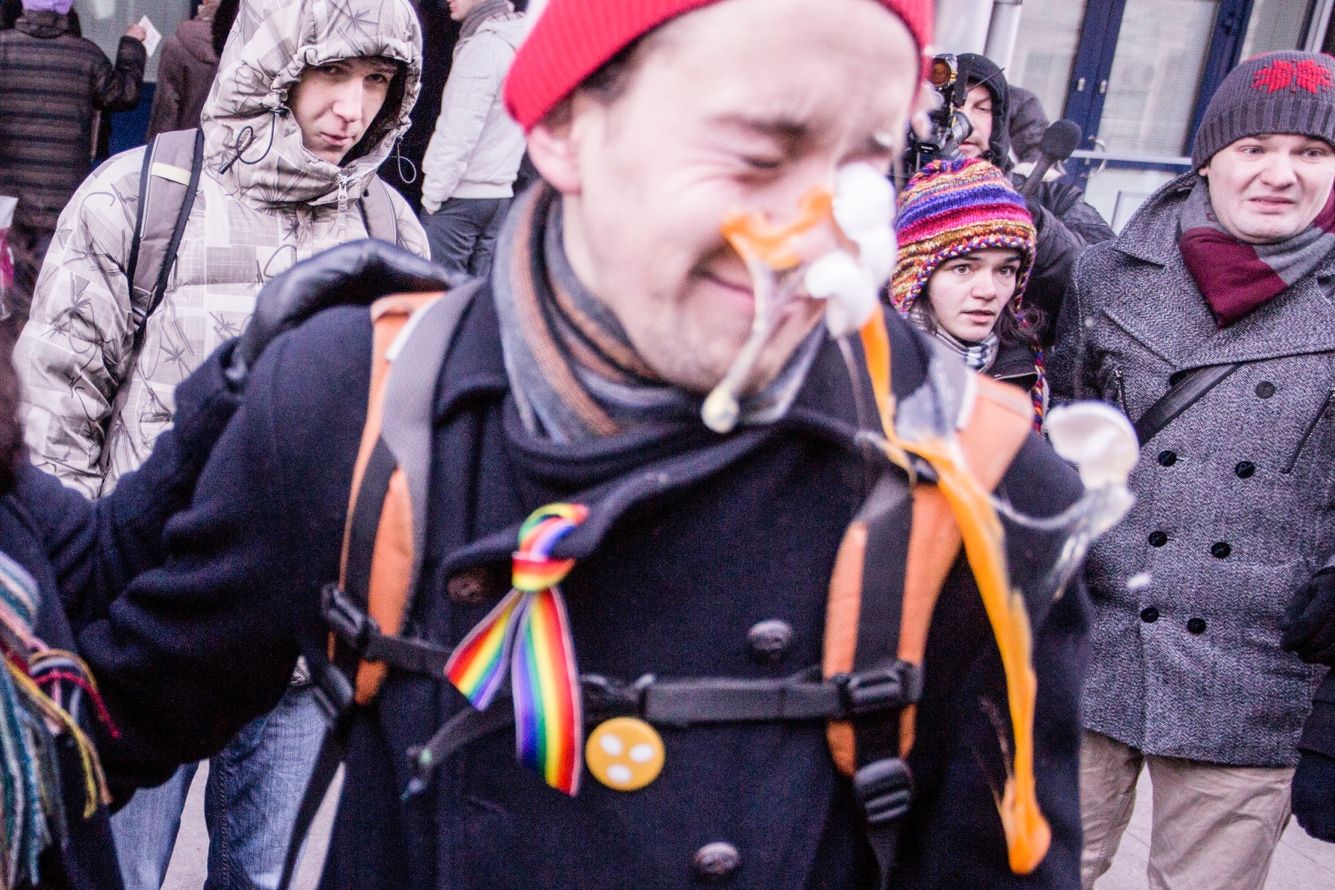 Иногда для того, чтобы быть задержанным, достаточно вытащить из сумки радужный флаг, как это произошло с подростками в петербургском лофте «Этажи» (в июне 2021 года прокуратура признала задержание незаконным). Главное правонарушение ЛГБТ+ в глазах государства — не «пропаганда», а просто видимость и само существование квир-людей; фактически они не имеют права открыто заявлять о себе. В официальном дискурсе им отведено место маргиналии, карикатуры, и любая попытка изменить этот статус-кво преследуется.