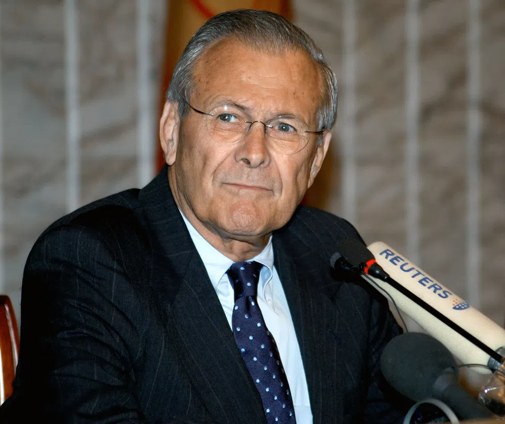Рамсфелд занимал пост министра обороны дважды: в 1975—1977 годах (тогда президентом был Джеральд Форд) и в 2001—2006 годах (пост главы государства занимал в то время Джордж Буш-младший). Он после атак на башни-близнецы 11 сентября 2001 года начал военную кампанию в Афганистане в том же году, а затем — спланировал вторжение в Ирак в 2003-м.