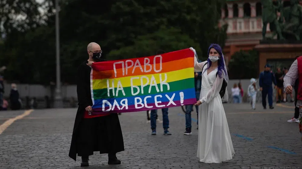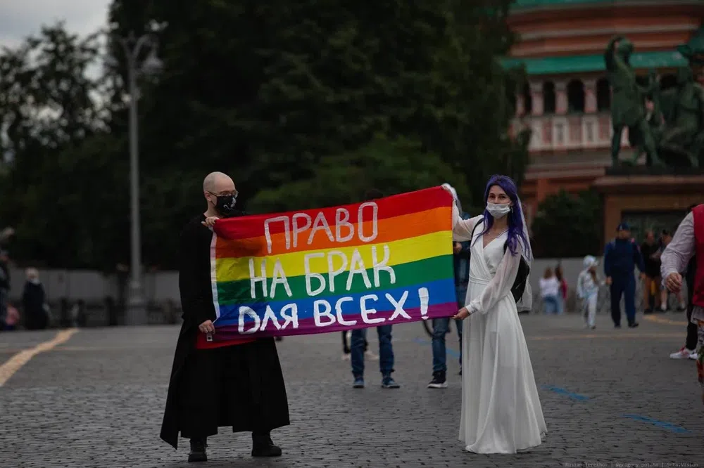 В Москве задержали трансгендерного мужчину Алана Леонгарда и активистку Валю Нарциссову после того, как они вышли на Красную площадь с радужным флагом, на котором было написано «Право на брак для всех». Об этом «Новой газете» сообщил пресс-секретарь «Российской ЛГБТ-сети» Тим Бесцвет.