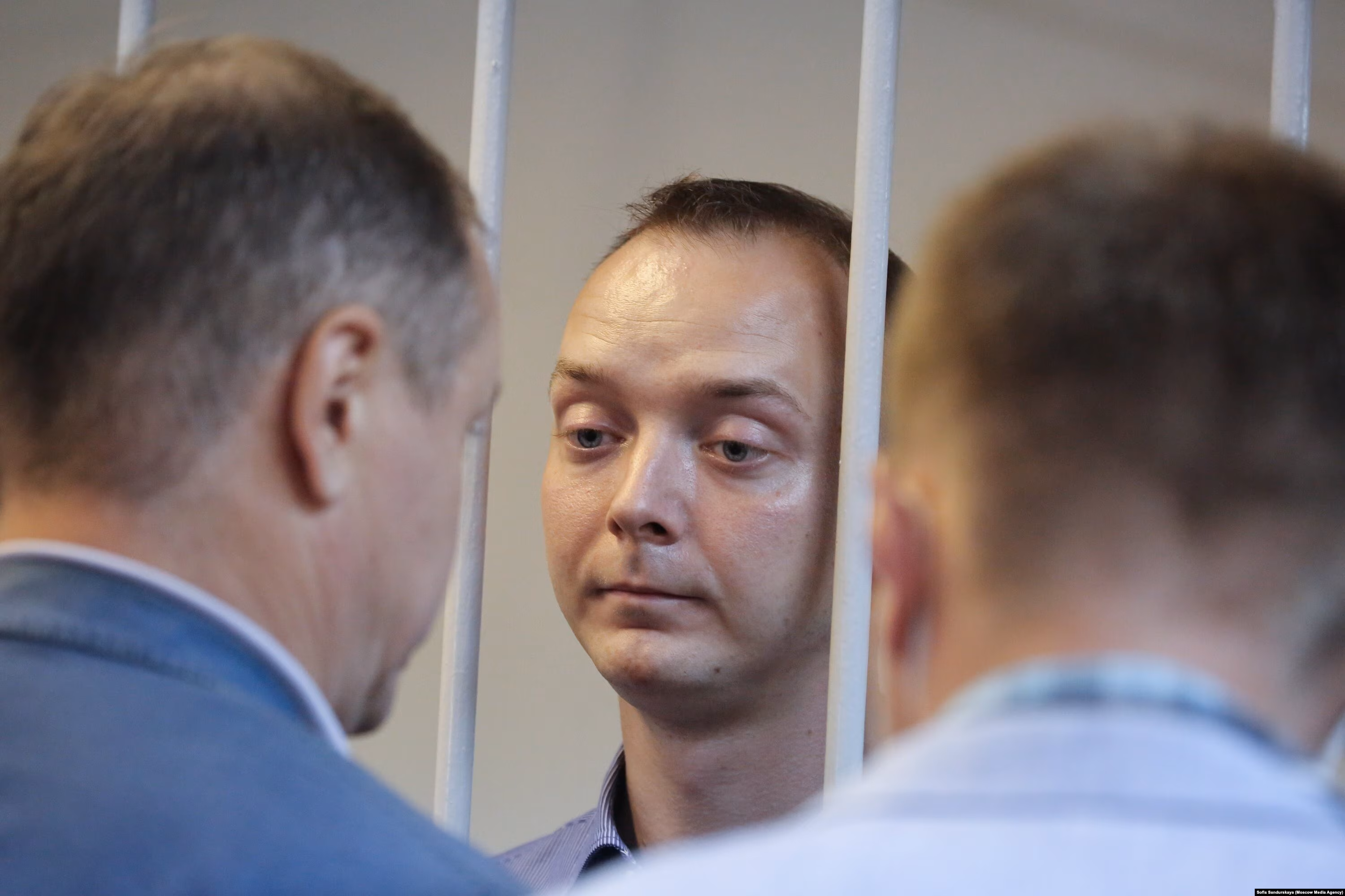 Мосгорсуд продлил до 7 октября арест бывшему журналисту "Коммерсанта" и "Ведомостей", советнику главы Роскосмоса Ивану Сафронову, сообщил корреспондент Радио Свобода из зала суда. Бывший военный корреспондент подозревается в государственной измене.