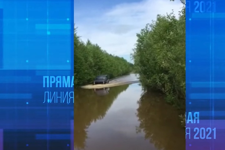 Наталья Прокопьева из поселка Боровой близ красноярского Лесосибирска рассказала Путину о затопленной дороге в поселок. Вода появилась на участке из-за неправильно установленной дренажной трубы.