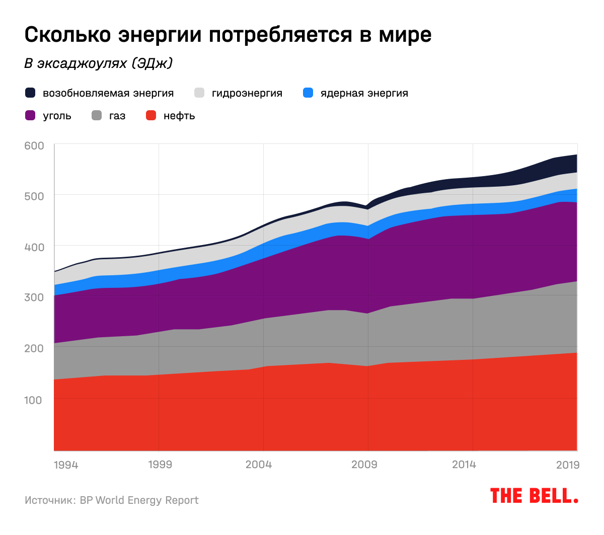 Несмотря на значительные инвестиции в зеленую энергетику, мир по-прежнему работает на ископаемом топливе. Из последнего BP World Energy Report по итогам 2019 года (более поздних данных еще нет) следует, что возобновляемые источники базовой энергии (primary energy) составили всего 5%. Гидроэнергетика составляет 6,4%. Все последние 20 лет эти цифры не превышают 11%. То есть, несмотря на большие инвестиции в возобновляемые источники, их доля в общем балансе не растет: не меньше денег Китай и Индия инвестируют в «грязные» источники.