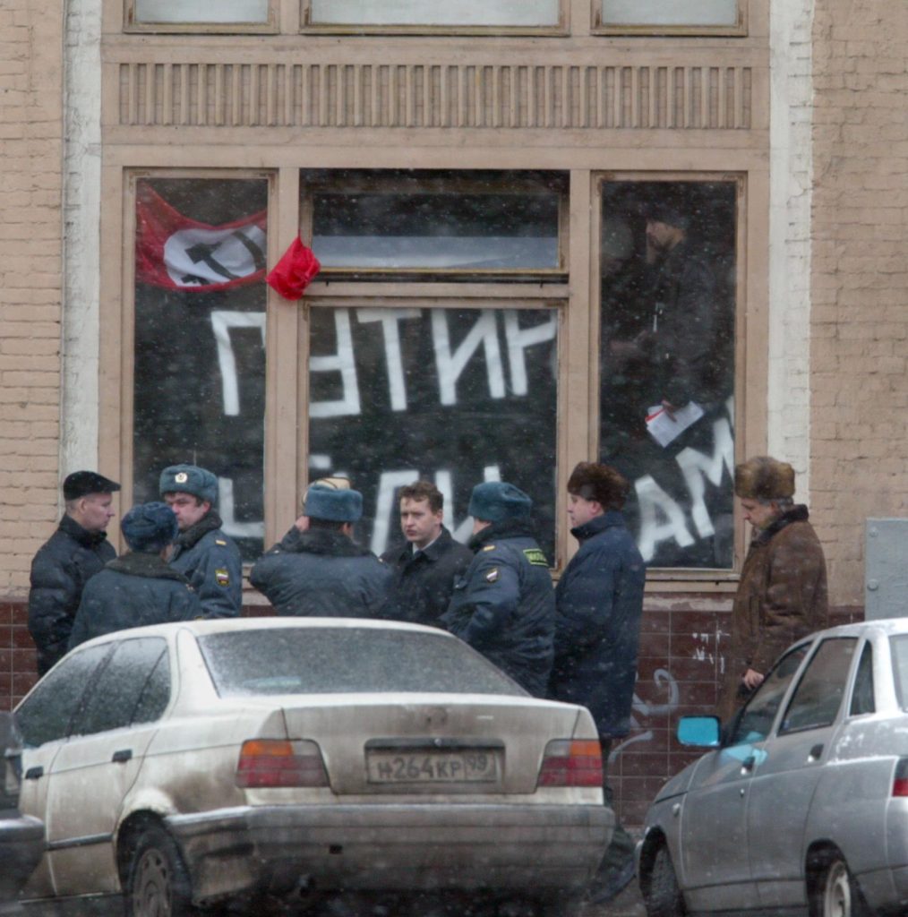 Прессинг НБП в те годы ощущала по полной. Ее лидер Эдуард Лимонов отбывал срок в колонии — его обвиняли в попытке захвата власти в северном Казахстане, но в итоге приговорили к четырем годам лишения свободы за незаконную покупку оружия. Тем временем его сторонники забрасывали Владимира Жириновского смесью горчицы с мороженым и обстреливали Геннадия Зюганова помидорами. Тогда нацболы были единственными, кто занимался «уличной политикой», говорит бывший активист НБП Дмитрий Селезнев: «Кроме нас, на улицы больше не выходил никто — тем более несанкционированно. Это сейчас улицы бурлят. А тогда либералов не было на улицах абсолютно, они научились выходить протестовать благодаря нам». По словам Селезнева, тогда «нацболы были единственной яркой, подвижной, гибкой и взрывоопасной силой на политическом горизонте».
