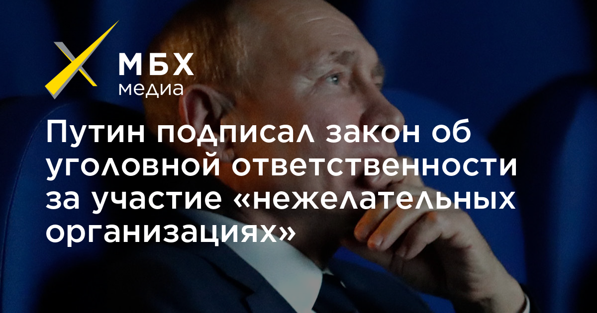 Президент России Владимир Путин подписал закон об уголовной ответственности за участие в деятельности в России нежелательных иностранных и международных организаций. Об этом сообщает РИА Новости.