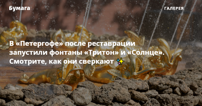 «Тритон» и «Солнце» считаются важнейшими памятниками Нижнего парка «Петергофа». «Бумага» показывает, как фонтаны сверкают в солнечных лучах после реставрации.