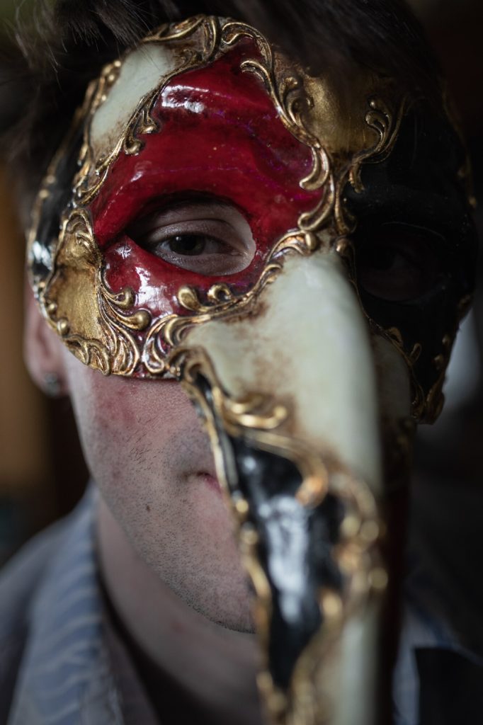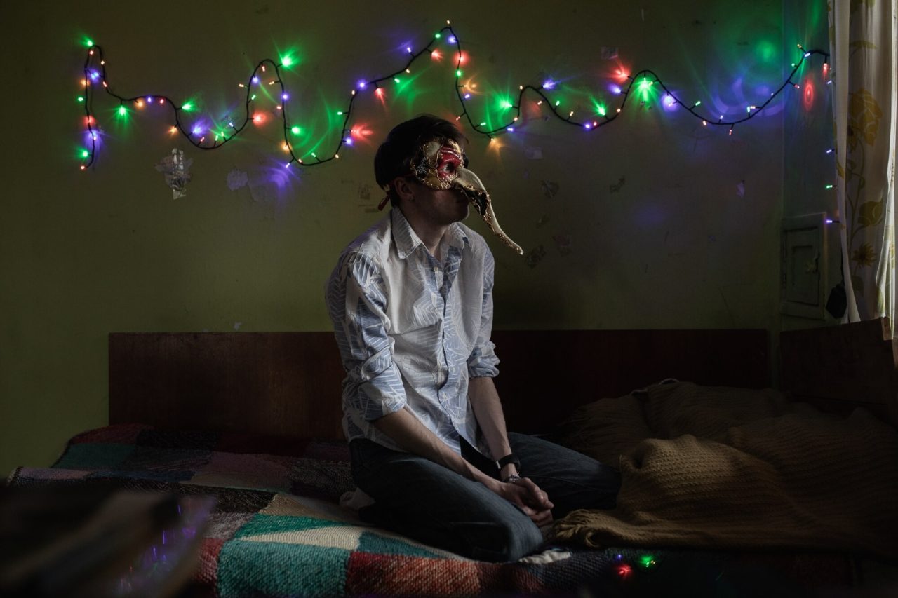 Тимофей в маске. Он ее купил в Венеции. Маска помогает Тимофею отключаться от мира и медитироватьФото: Евгения Жуланова для ТД Диагноз «детский церебральный паралич» (ДЦП) ему поставили еще в младенчестве. Врачи говорят: повезло. Если бы не самоотверженность матери, могло быть намного хуже.