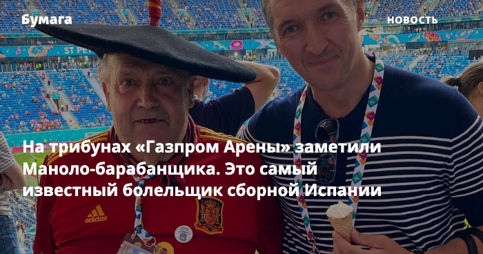 На трибунах «Газпром Арены» заметили Мануэля Касерес Артесеро, которого также называют Маноло-барабанщиком. Это самый известный болельщик сборной Испании.