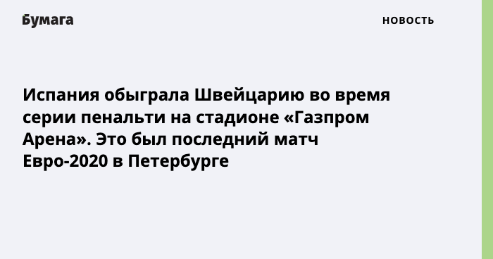 Испания обыграла Швейцарию во время серии пенальти на стадионе «Газпром Арена». Это был последний матч Евро-2020 в Петербурге.