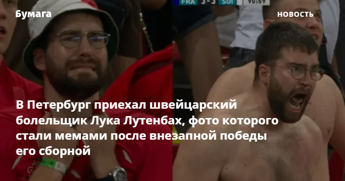 Футбольный фанат Лука Лутенбах, который стал героем мемов из-за своих ярких противоположных эмоций во время недавнего матча, приехал в Петербург. Вечером 2 июля сборная Швейцарии, за которую болеет Лука, сыграет в четвертьфинале Евро-2020 против Испании.