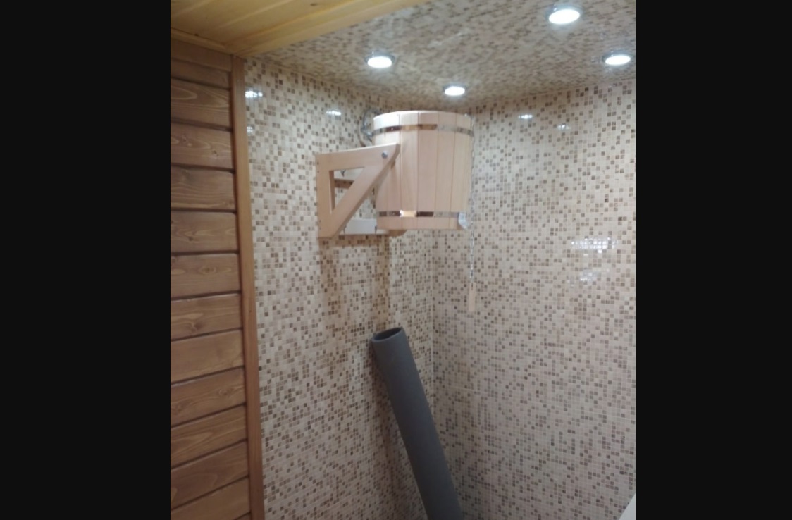 Были установлены новые светильники, сделана паровая, отдельно поставлен душ и куплено ведро для того, чтобы обливаться холодной водой.