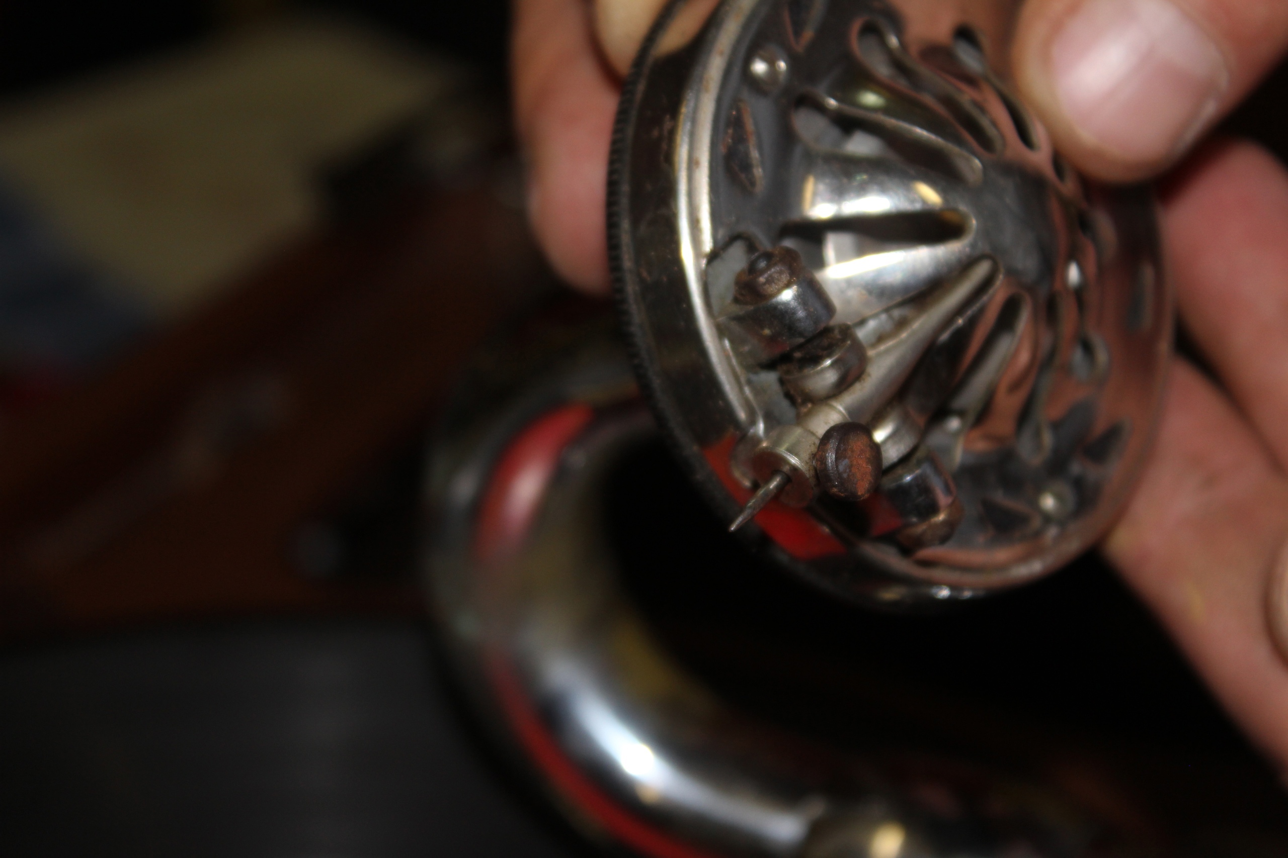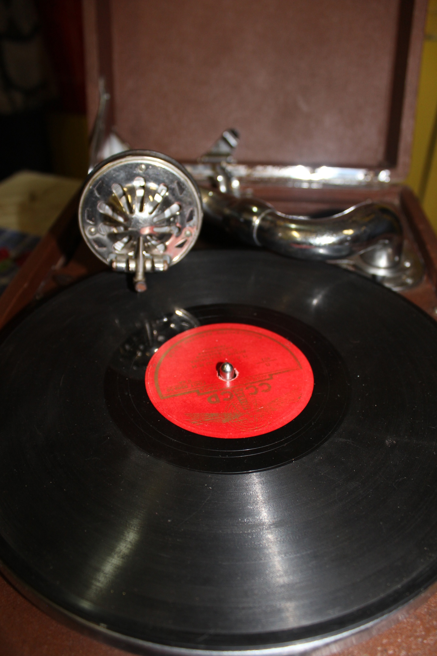 У Андрея в коллекции есть даже патефон. Что это? Расскажем – это механическое устройство для проигрывания граммофонных пластинок, переносная версия граммофона. В отличие от граммофона, у патефона рупор маленький и встроен в корпус, сам аппарат скомпонован в виде чемоданчика, переносится в застегнутом виде за специальную ручку.
