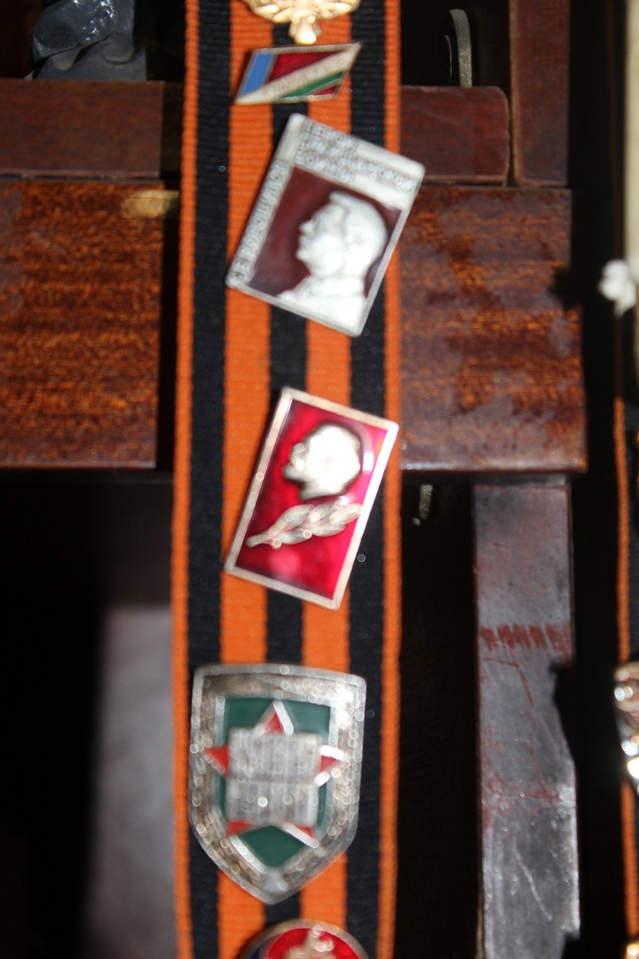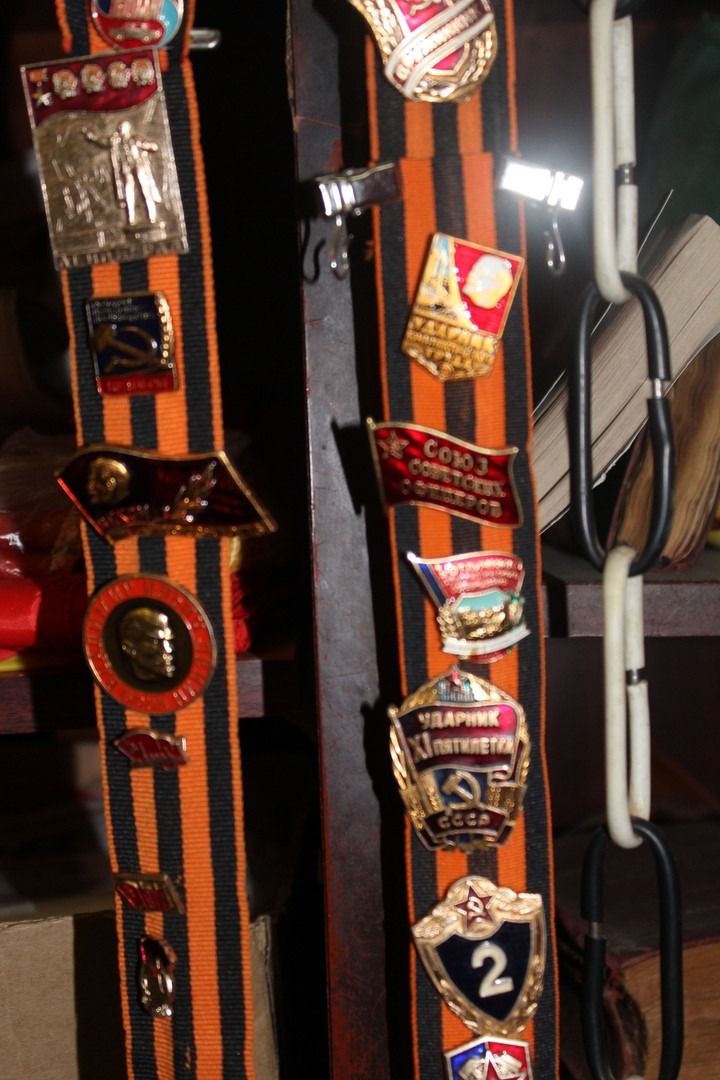 В этом здании собрана коллекция рубашек, ремней, фуражек. Андрей помогает тем, кто к нему обращается за помощью на выступлении в праздник – День Победы.