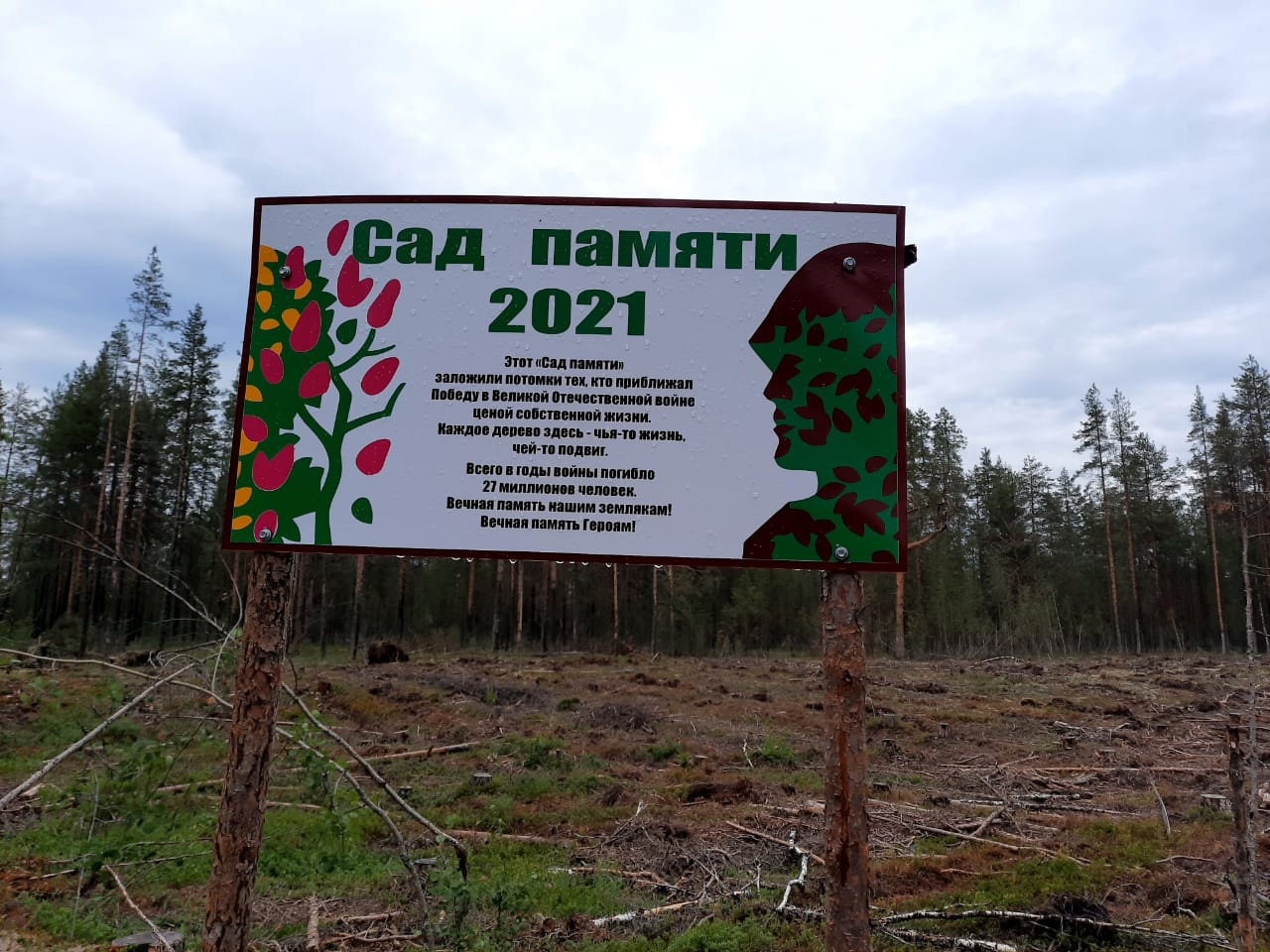 Зачем спекулировать на памяти? Житель Карелии ужаснулся, случайно наткнувшись на вырубку, обвешанную плакатами в честь патриотической акции «Сад памяти» – саженцев на ней он не обнаружил…