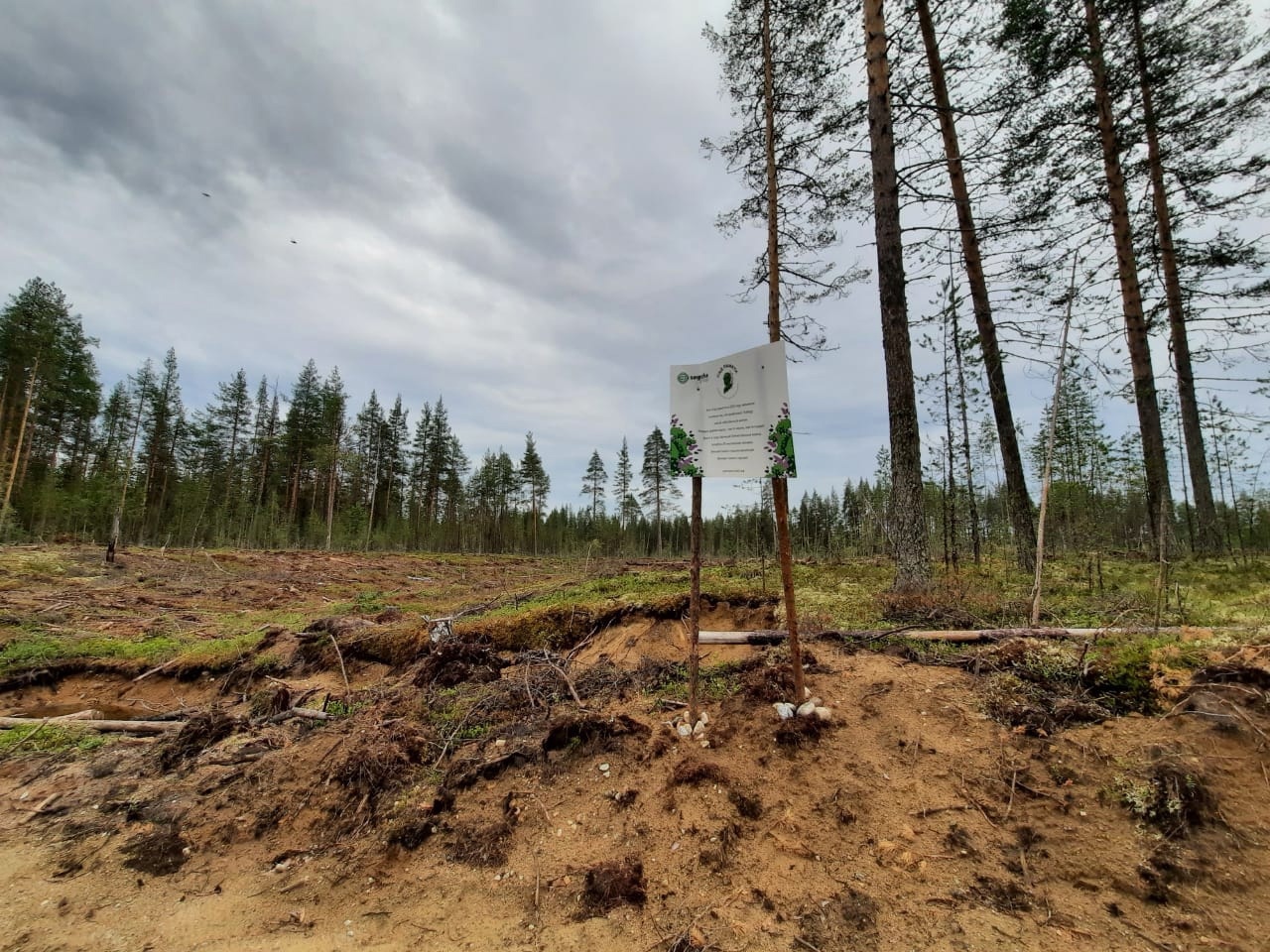 – Я наткнулся на плакаты, сообщающие о проведении международной акции в честь годовщины Победы, когда ехал на лесное озеро. Удивило, что в глухом лесу кто-то посадил сад? И этот «кто-то», по-видимому, лесопромышленный гигант Segezha Group? «Каждое дерево здесь – чья-то жизнь, чей-то подвиг…», - написано на баннерах, но ни одного саженца на вырубке я не обнаружил. Может быть, там какие-то шишки пророщенные посажены, но таких тоже не нашел, – рассказывает житель Карелии. – Тот пятачок, где установлены плакаты, еще более или менее расчищен от порубочных остатков. А метрах в 100 – ужас, там пни метровые стоят, наверно, зимой лес заготавливали…