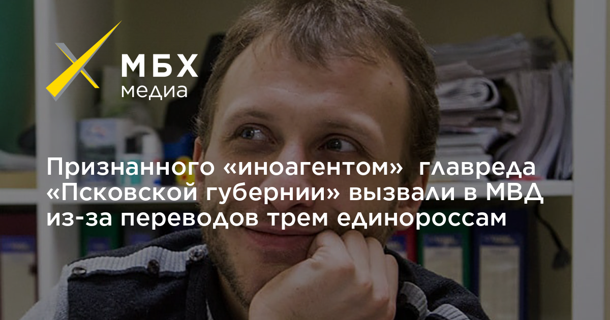 Признанного «иноагентом» главреда «Псковской губернии» вызвали в МВД из-за переводов трем единороссам