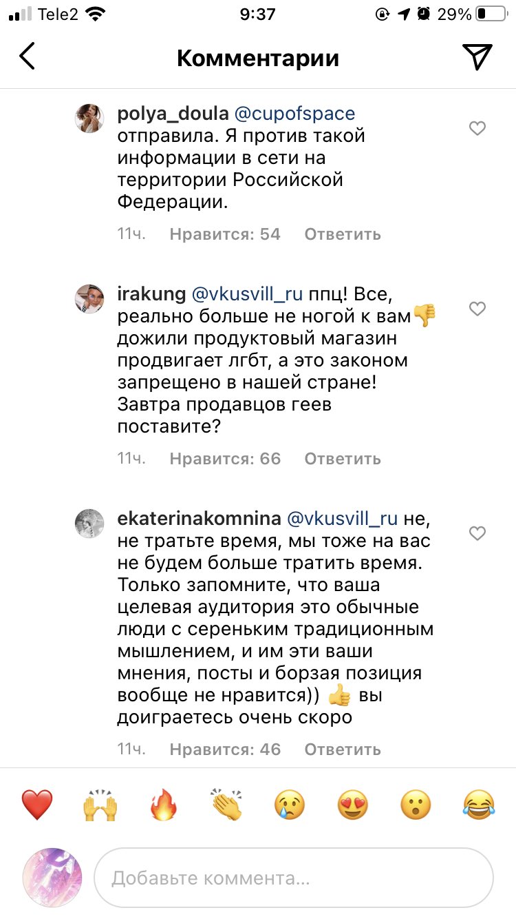 ору, теперь в ВкусВилл не ходят ни гомофобы, ни квир сообщество 😂😂