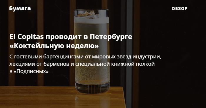 El Copitas проводит в Петербурге «Коктейльную неделю»