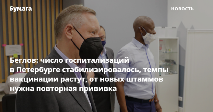 В заключение губернатор заявил о необходимости проходить ревакцинацию, объяснив это мутациями коронавируса. «Для защиты от новых штаммов COVID-19 требуется более высокий, чем раньше, уровень антител. Тем, кто болел или прививался больше полугода назад, необходима ревакцинация по рекомендации врачей», — сказал Беглов. О том, действительно ли ревакцинация необходима и какие к ней есть рекомендации, читайте здесь.