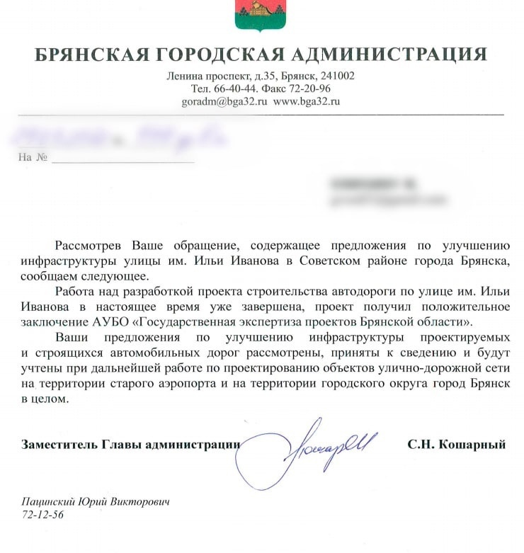 Оказалось, что улица уже получила положительное заключение Государственной экспертизы проектов Брянской области.