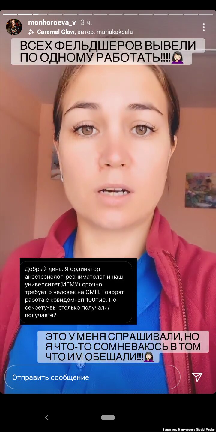 Фельдшеру из Иркутска Валентине Монхороевой после ее прямого эфира в соцсетях с запросом к властям области что-то сделать с дефицитом коечного фонда позвонили из Минздрава региона.