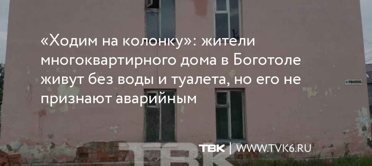 «Ходим на колонку»: жители многоквартирного дома в Боготоле живут без воды и туалета, но его не признают аварийным