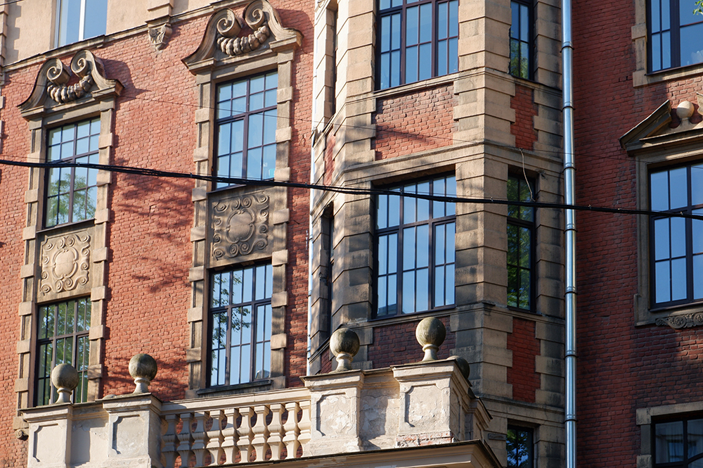 Этот дом — как раз представитель последнего поколения дореволюционных доходных домов. Его построили для хозяина фортепианной фабрики Дидерихса архитекторы Алексей Бубырь и Николай Васильев. Но почерк авторов «дома из „Питер FM“» на Фонтанке и «Подписных изданий» на Литейном здесь едва узнаваем. Первоначальный подчеркнуто минималистичный вариант фасадов в духе северного модерна архитекторы переделали на классический лад: добавили могучие капители, картуши с инициалами владельца, богатую отделку входных групп, карниз с львиными масками. Совершенство пропорций и элегантное величие — таким мог бы быть девиз строителей этого дома.