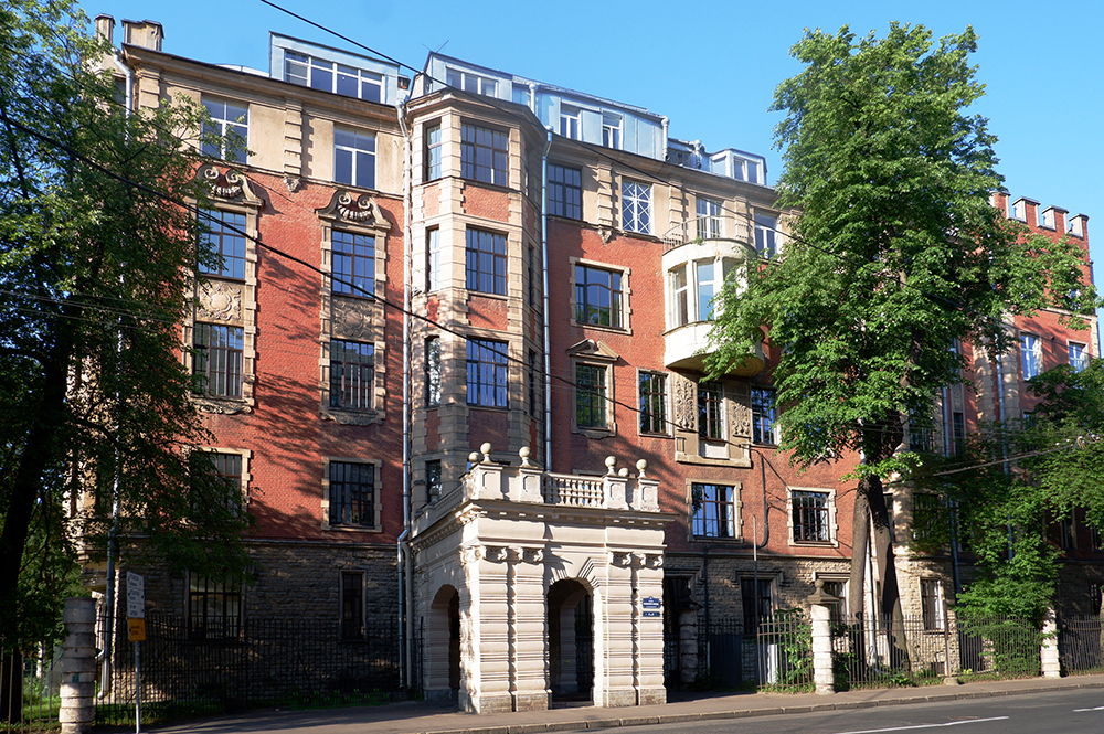 Ломаные кровли, башенки, причудливые барельефы — стильный дом для ценителей европейской романтики прямо у Ботанического сада. Здание на Аптекарском проспекте, 6 — одно из первых в Петербурге, где можно было не только снять, но и купить квартиру. Его построили в 1911–1912 годах молодые архитекторы Роберт Ульман и Андрей Оль для жилищного кооператива — Каменноостровского товарищества постоянных квартир. Два архитектора вместе учились в Институте гражданских инженеров, для обоих эта работа стала первым самостоятельным заказом в статусе дипломированных зодчих. Соавторы были вознаграждены за труды не только деньгами, но и квартирами. Роберт Ульман получил квартиру на верхнем, седьмом этаже, Андрею и Римме Оль достались апартаменты на более престижном шестом.