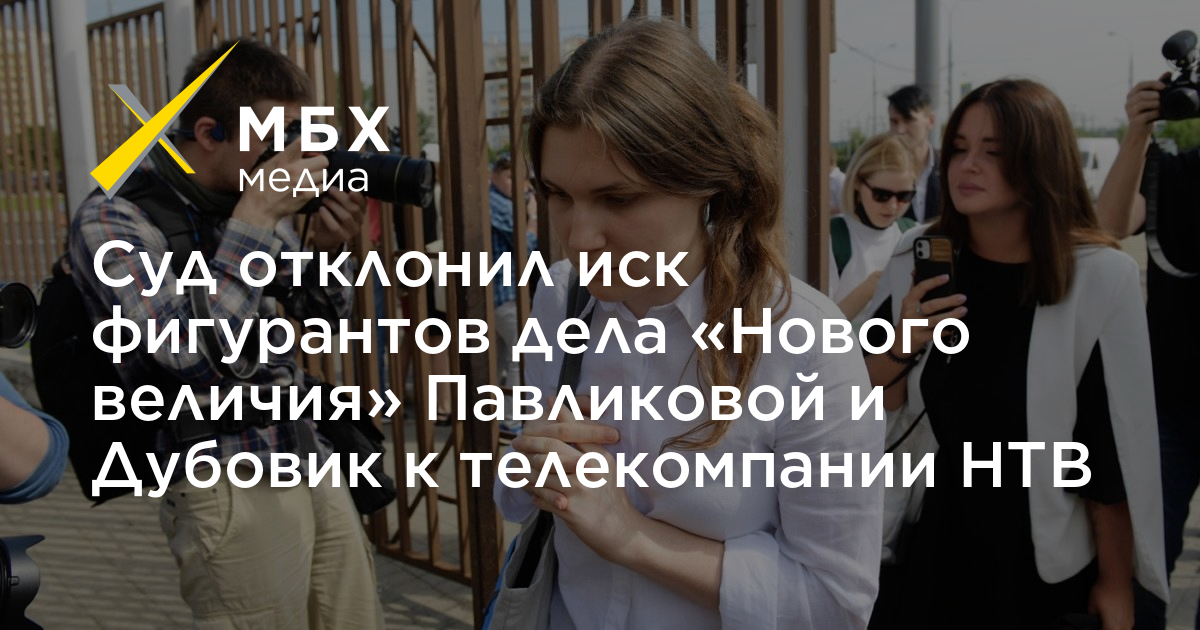 Пресненский районный суд отклонил иск фигурантов дела «Нового Величия» Анны Павликовой и Марии Дубовик к НТВ, в котором они требовали признать недостоверными сведения из сюжета, посвященному делу «Нового Величия». Об этом «МБХ медиа» сообщила адвокат Павликовой Ольга Карлова, также информацию подтвердили в пресс-службе суда.