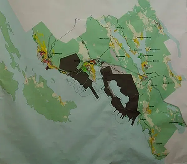 Площадь будущего морского хаба (как любят называть планирующийся порт чиновники Ленобласти) в несколько раз превысит территорию города Приморска. И станет объектом техногенного воздействия регионального масштаба. Так, для поставки грузов из разных уголков России ему потребуется ежесуточно 28 грузовых поездов. Вопрос, по каким путям они будут идти, проектом не рассматривается.