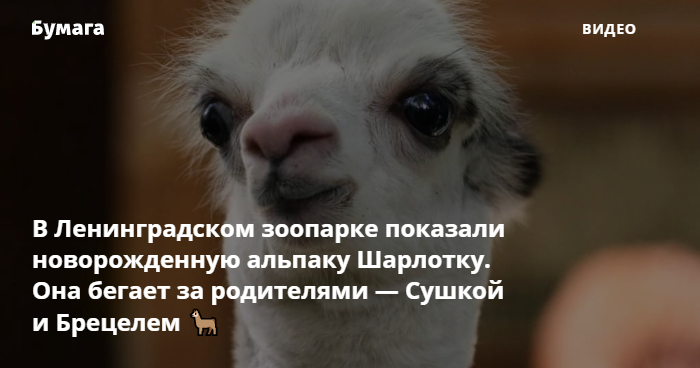В Ленинградском зоопарке родилась альпака Шарлотка. Сотрудники учреждения опубликовали фотографию и видео новорожденного животного.