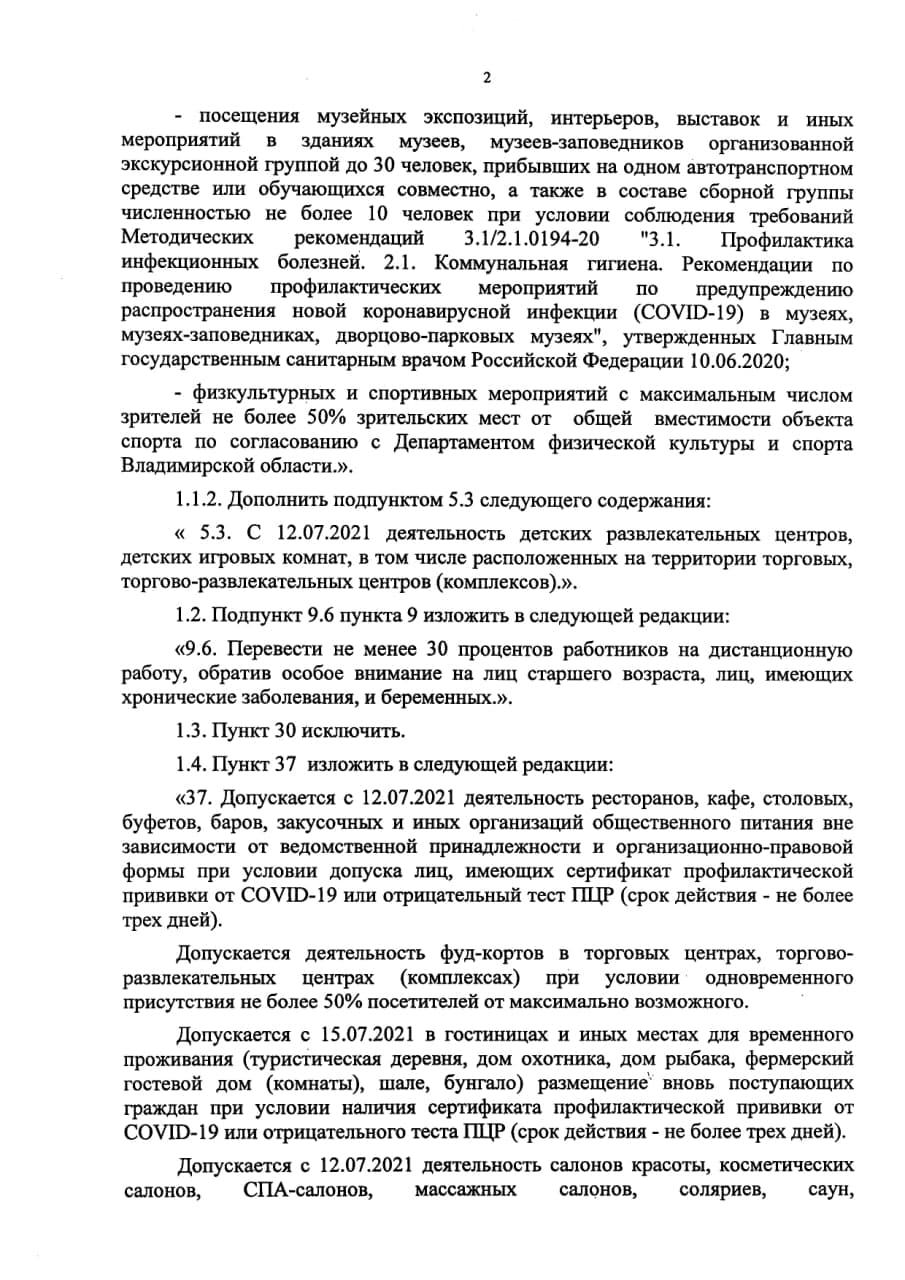 С понедельника, 12 июля, во Владимирской области общепит (любой – от ресторана до столовой) может принимать посетителей только с сертификатом о прививке либо отрицательным тестом на коронавирус.