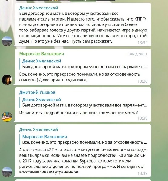 Денис Хмелевской гораздо более откровенен и прямолинеен, чем Иван Жилищиков. В 2020 году, когда он баллотировался в губернаторы Кубани в одном из политических телеграм-чатов Краснодарского края, Хмелевской прямо признался в участии в сговоре на выборах 2017 года.
