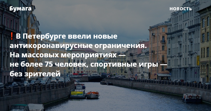 Согласно новым правилам, на массовых мероприятиях не может быть более 75 человек. Однако ограничение не затронет мероприятия, согласованные с комитетом по культуре и комитетом по физической культуре и спорту.