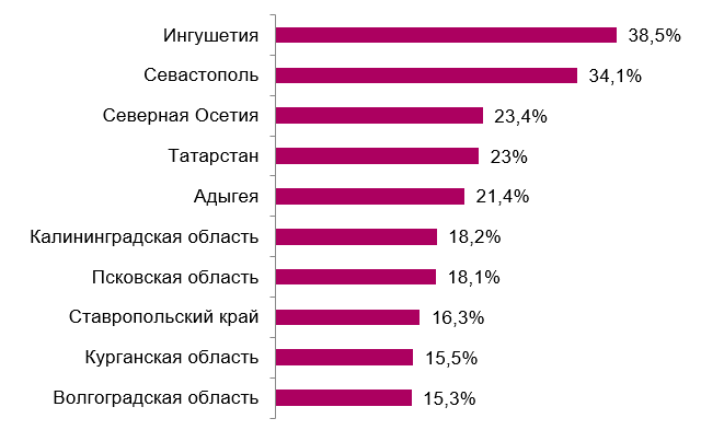 Псковская область вошла также в топ-10 регионов с наименьшей долей антизожников - в регионе их насчитали 21,1 процента.
