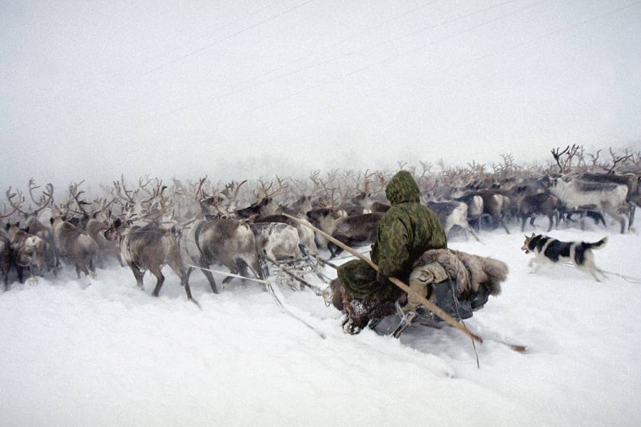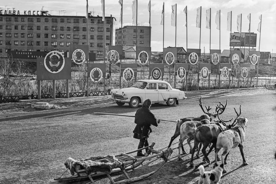 Оленевод с упряжкой на сельской улице. Ловозеро, Мурманская область. 1972 годФото: Семен Майстерман / ТАСС Государство должно оберегать образ жизни малочисленных народов