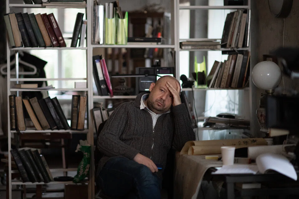 Место действия: квартира, двор с соснами (снимали в карантин в Репино) и проржавевший железный портрет Ленина. Ощущение клаустрофобии, замкнутого отплывающего в небытие мира: книги, папки, работы студентов, рукописи по Серебряному веку, портрет Ахматовой, картины Клюге. Кому все это нужно?