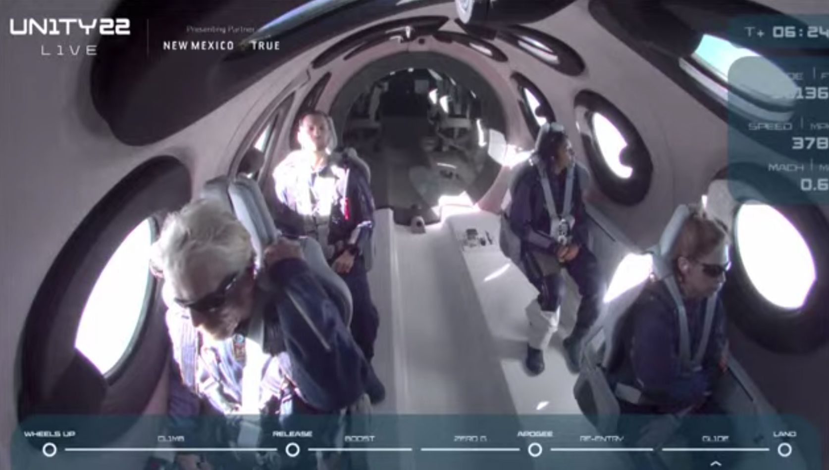 Студия на Земле пытается связаться с экипажем и, например, узнать, считает ли Брэнсон полет хорошим подарком на день рождения (18 июля Брэнсону исполнится 71 год).