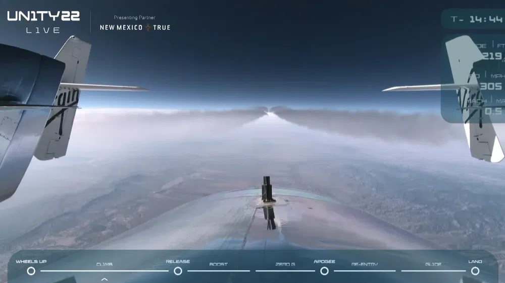 С космпорта «Америка» в штате Нью-Мексико (США) стартовал космический корабль Unity-22 компании Virgin Galactic с британским миллиардером Ричардом Брэнсоном на борту. Трансляция велась на официальном YouTube-канале компании.