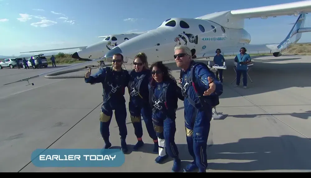 Вместе с Брэнсоном в экипаж вошли главный астронавт-инструктор компании Бет Мозес, старший операционный инженер Колин Беннетт, вице-президент по связям с правительством Сириша Бандла, а также пилоты Дэйв Маккей и Майкл Масуччи.